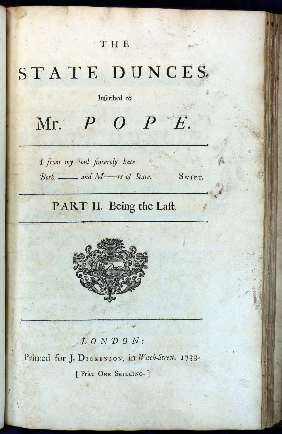 Alexander Pope and Friends. 16 pamphlets. 1733 – 1738.