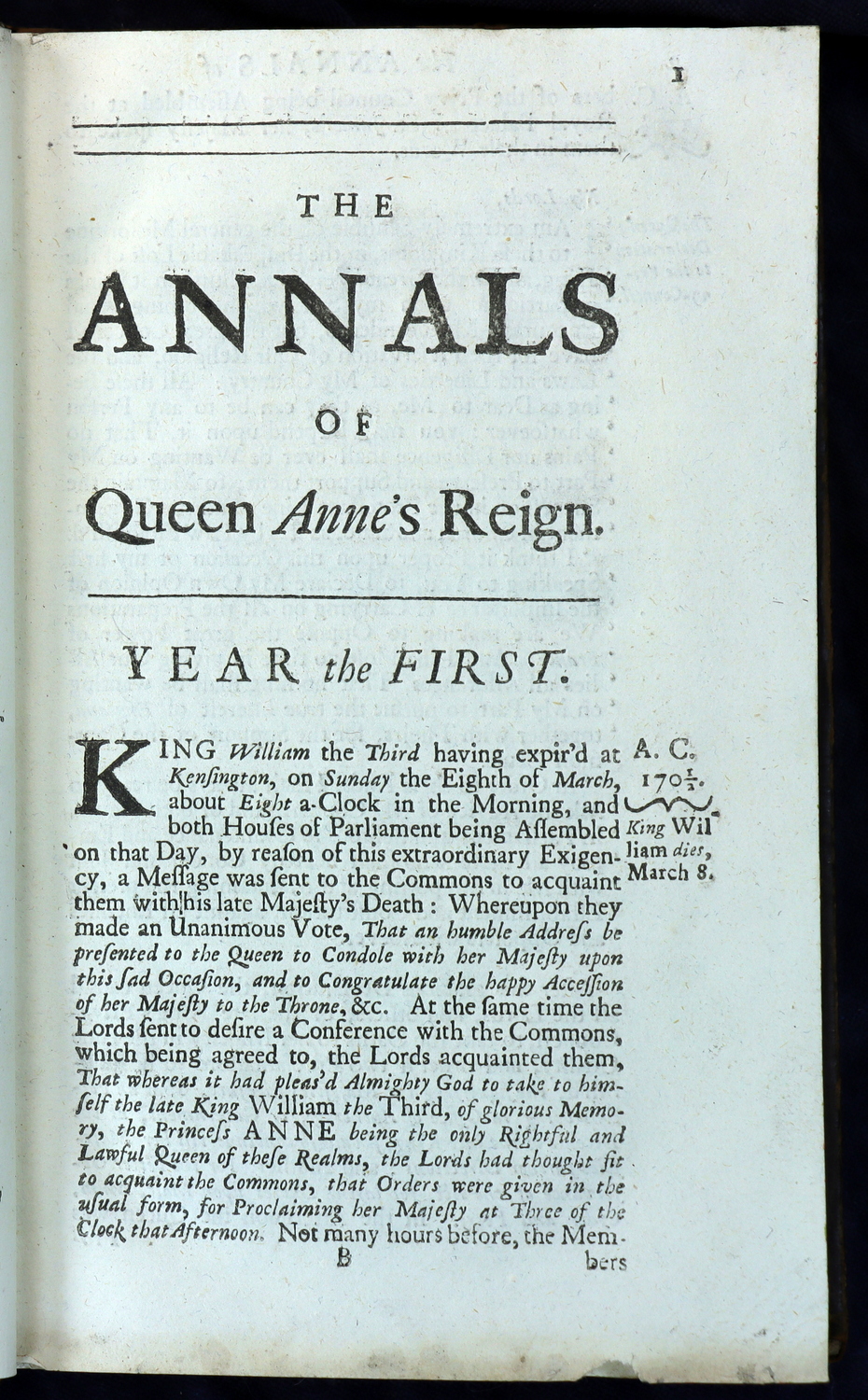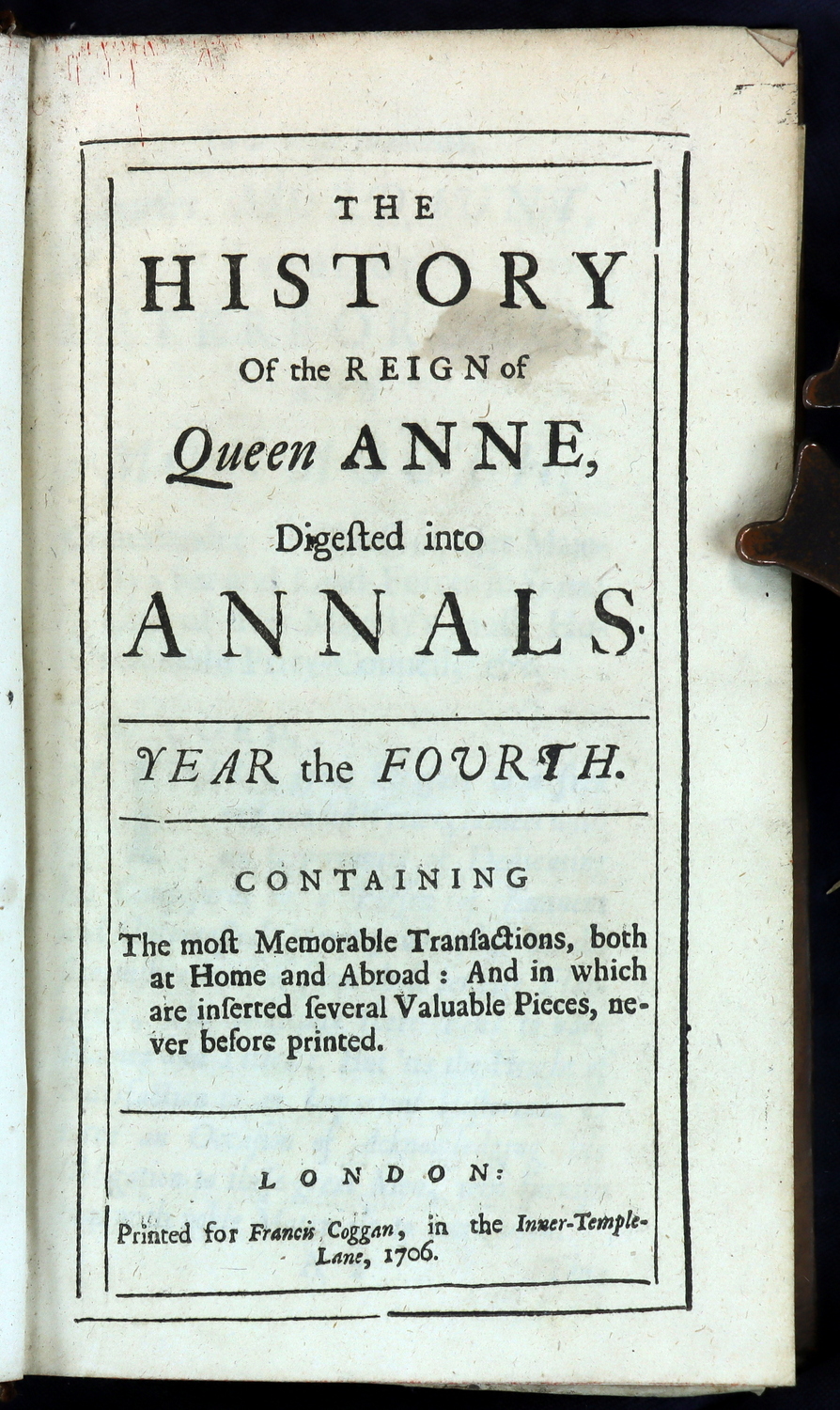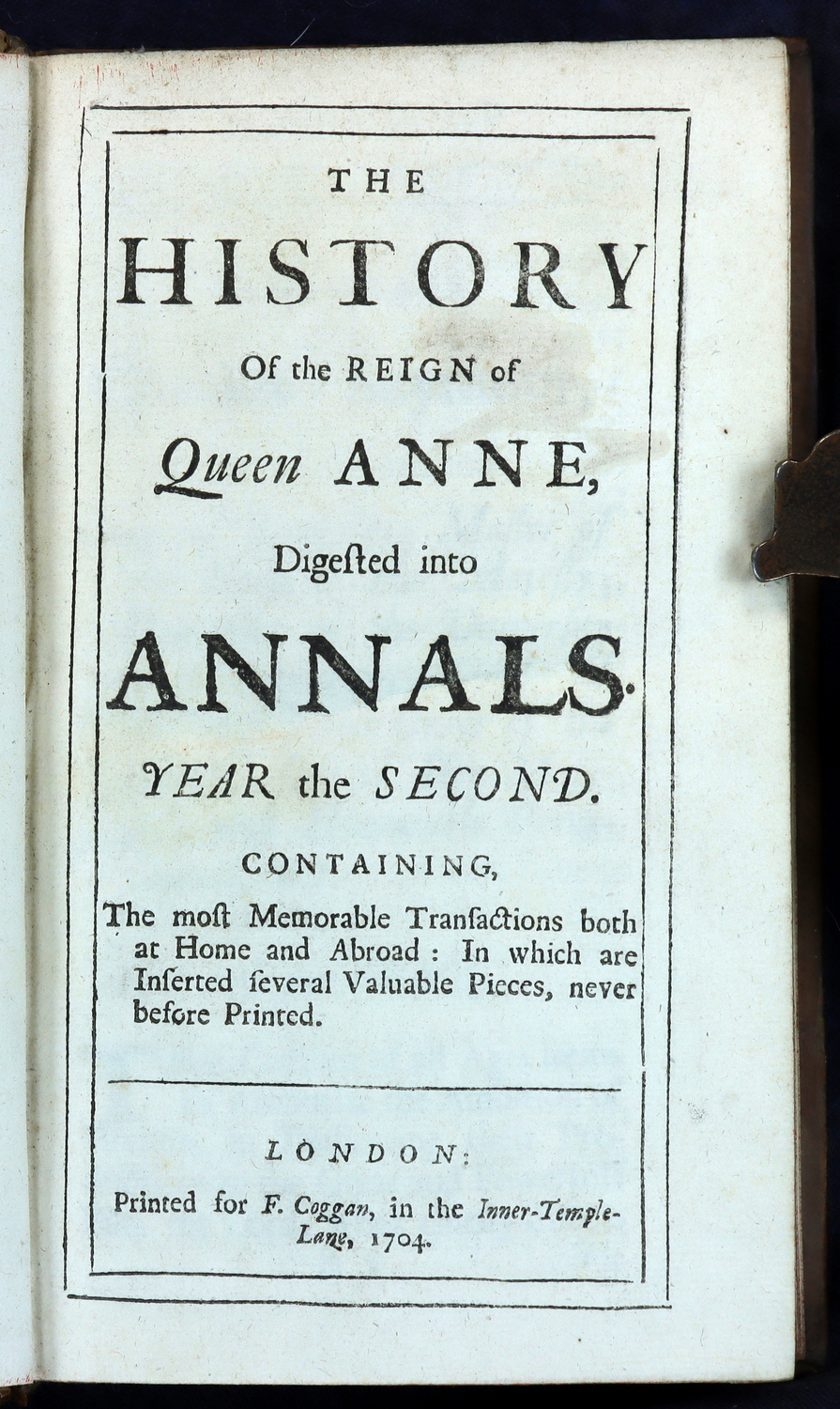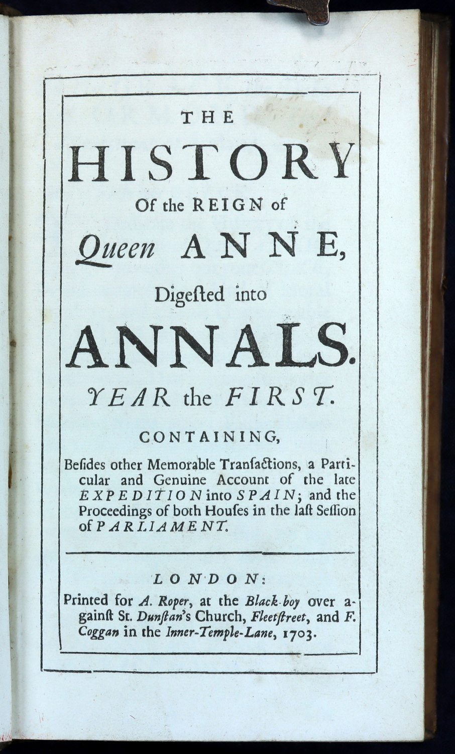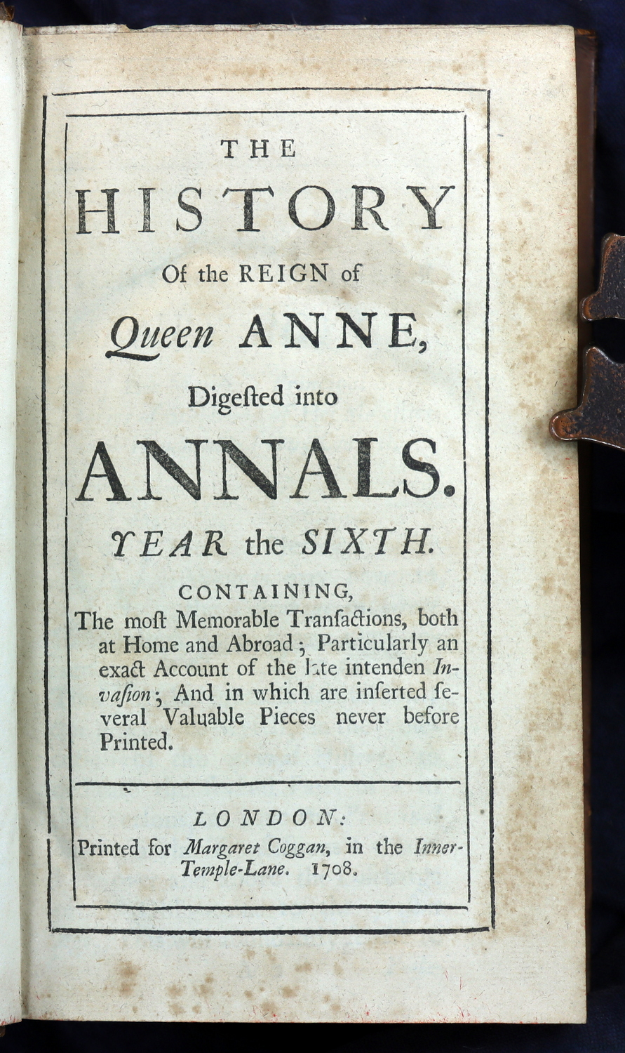 The History Of The Reign Of Queen Anne, Digested Into Annals. Year the First to Year the Eighth. 1703-1710