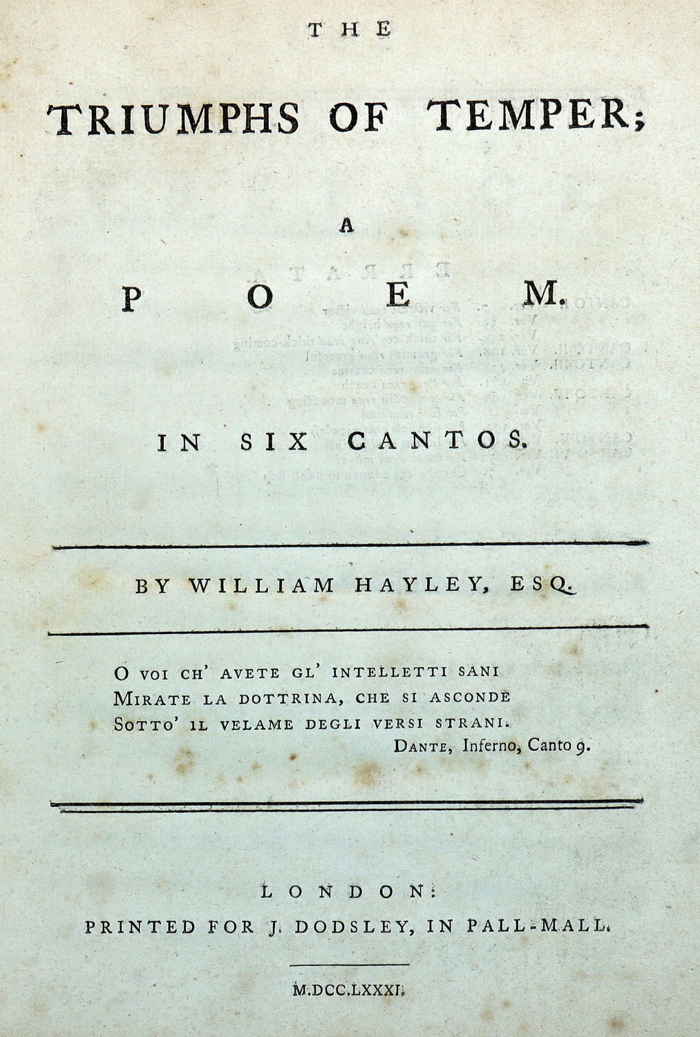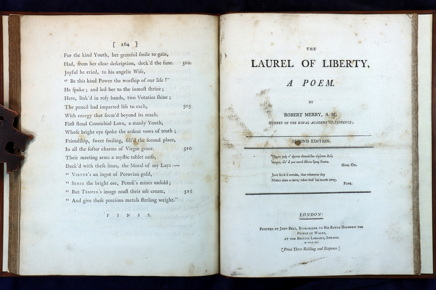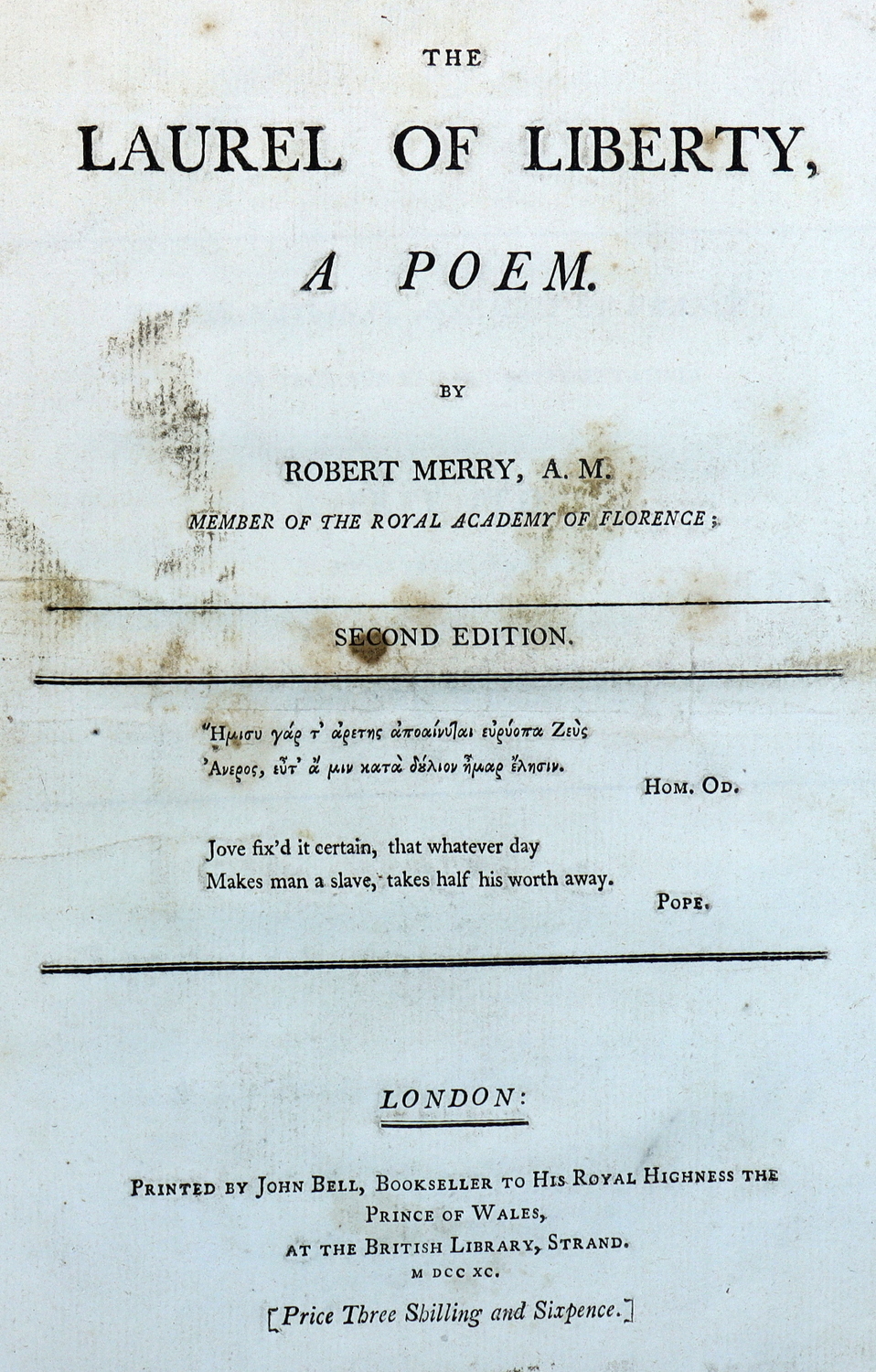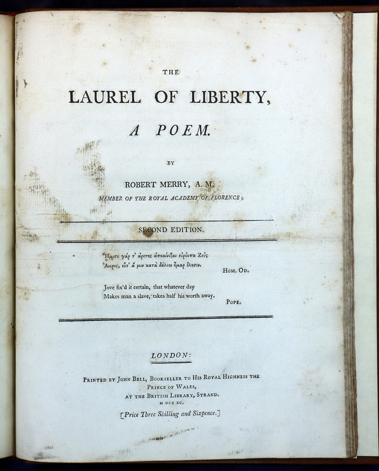 The Laurel of Liberty, A Poem. By Robert Merry, A.M. BOUND WITH: The Triumphs of Temper; A Poem. In Six Cantos. By William Hayley, Esq.